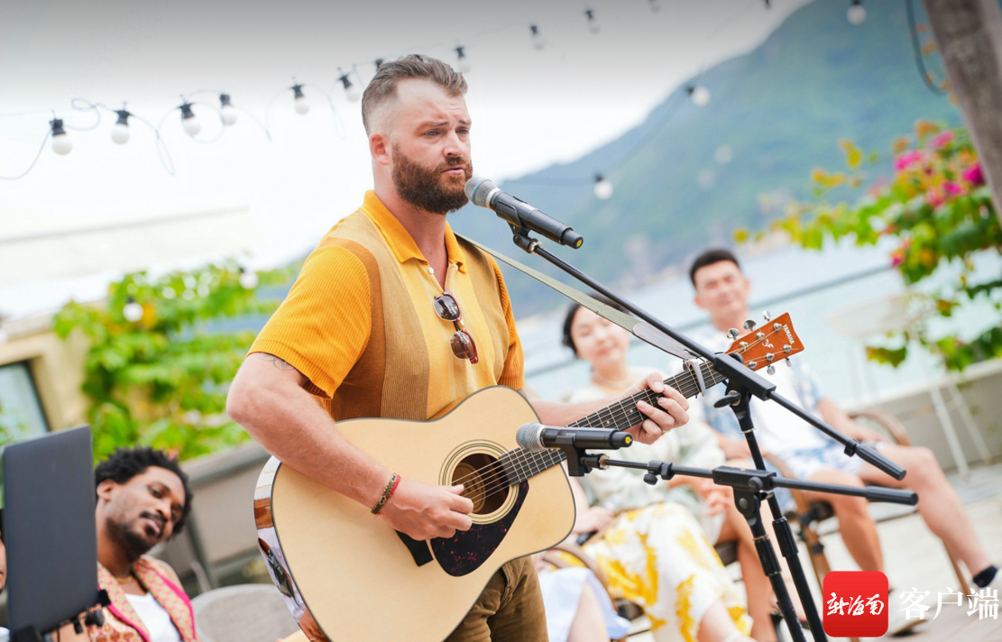 來(lái)自加拿大北部的原創(chuàng)歌手Ryan Meraw壓軸出場(chǎng),為全球觀眾帶來(lái)自己的原創(chuàng)曲目《To you》和《For a song》。他與妻子于2022年10月從靠近落基山脈的北美洲來(lái)到具有熱帶風(fēng)情的海南。伴著海風(fēng)和海浪的聲音,從尤克里里和吉他里跳躍而出的伴奏被賦予了更多的海島風(fēng)情。兩首譜滿故事的歌曲演奏結(jié)束后,現(xiàn)場(chǎng)觀眾意猶未盡,都忍不住沉浸其中。