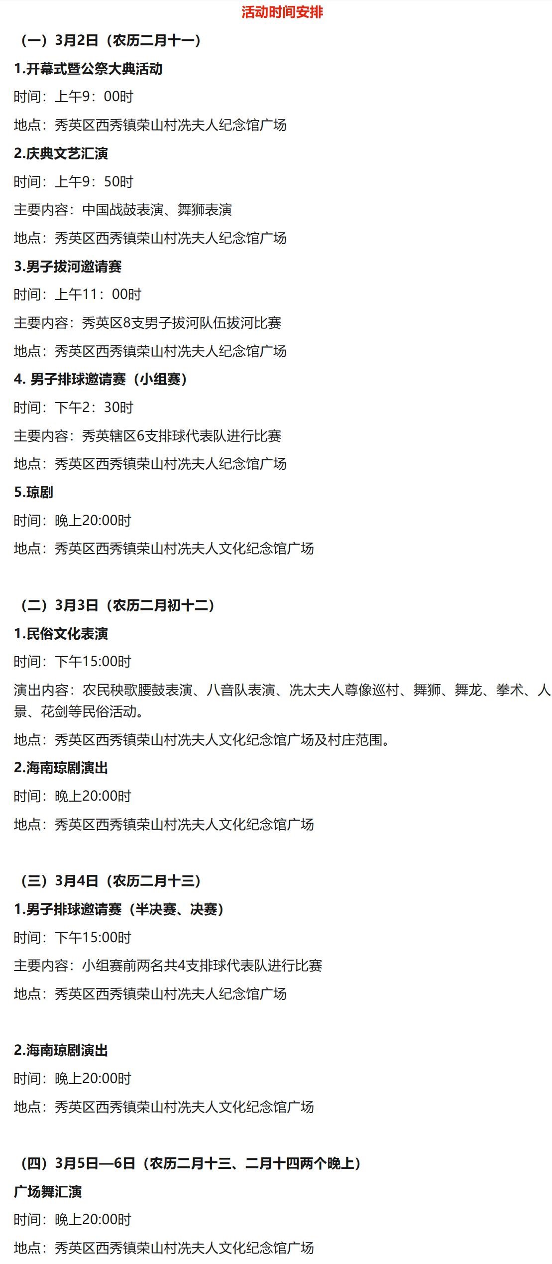 ?圖為2023年冼夫人文化節(jié)活動(dòng)安排(來源:秀英發(fā)布)