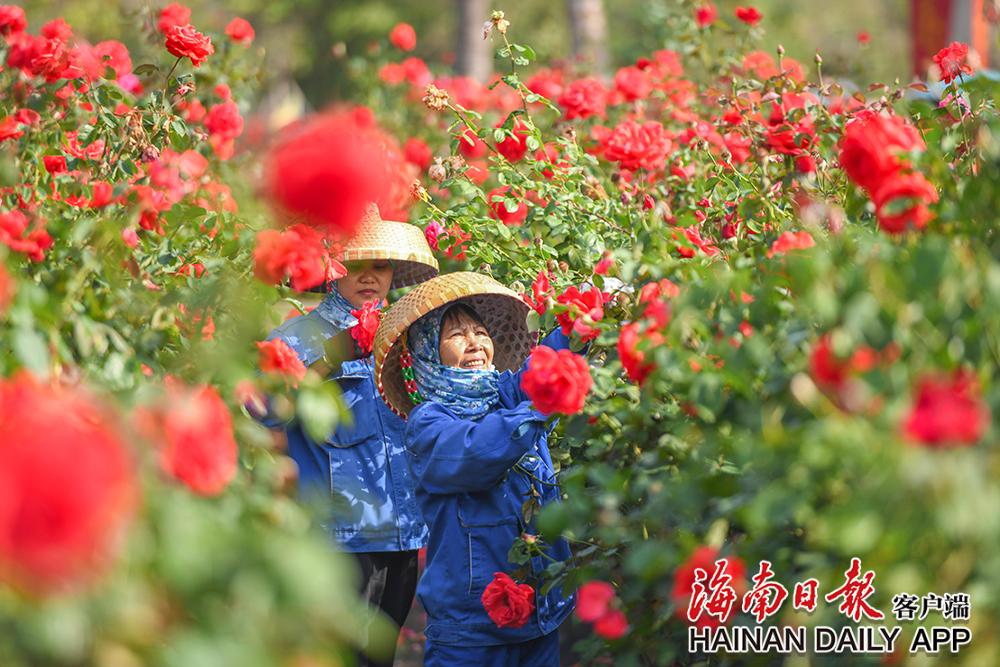 3月15日,在三亞亞龍灣玫瑰谷千畝玫瑰區(qū),花農(nóng)穿梭花叢中,玫瑰花映紅了村民的笑臉。海南日報記者 王程龍 攝