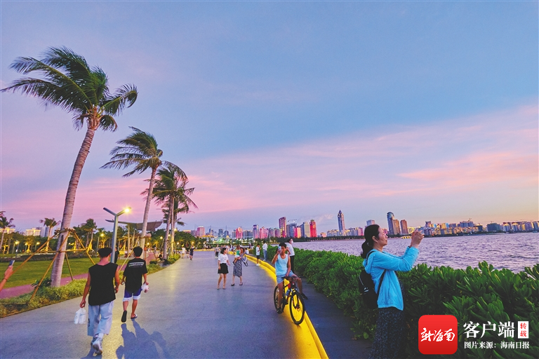 市民游客紛紛打卡海口灣外灘。海口市旅文局供圖