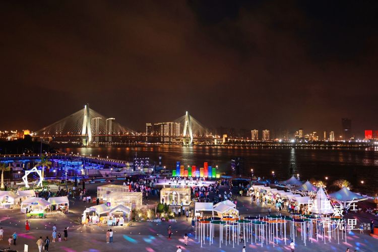 海口世紀海角商業街位于世紀大橋下,占地面積約一萬平方米。街區以濱海綠地為依托,以時尚簡潔建筑外觀為形象,以精品商業美食街區為平臺,營造成時尚潮流的社交活動場地。這個集海景、藝術、音樂、青年文化為一體的餐飲街區,進一步提升了海口灣夜間經濟的內涵。