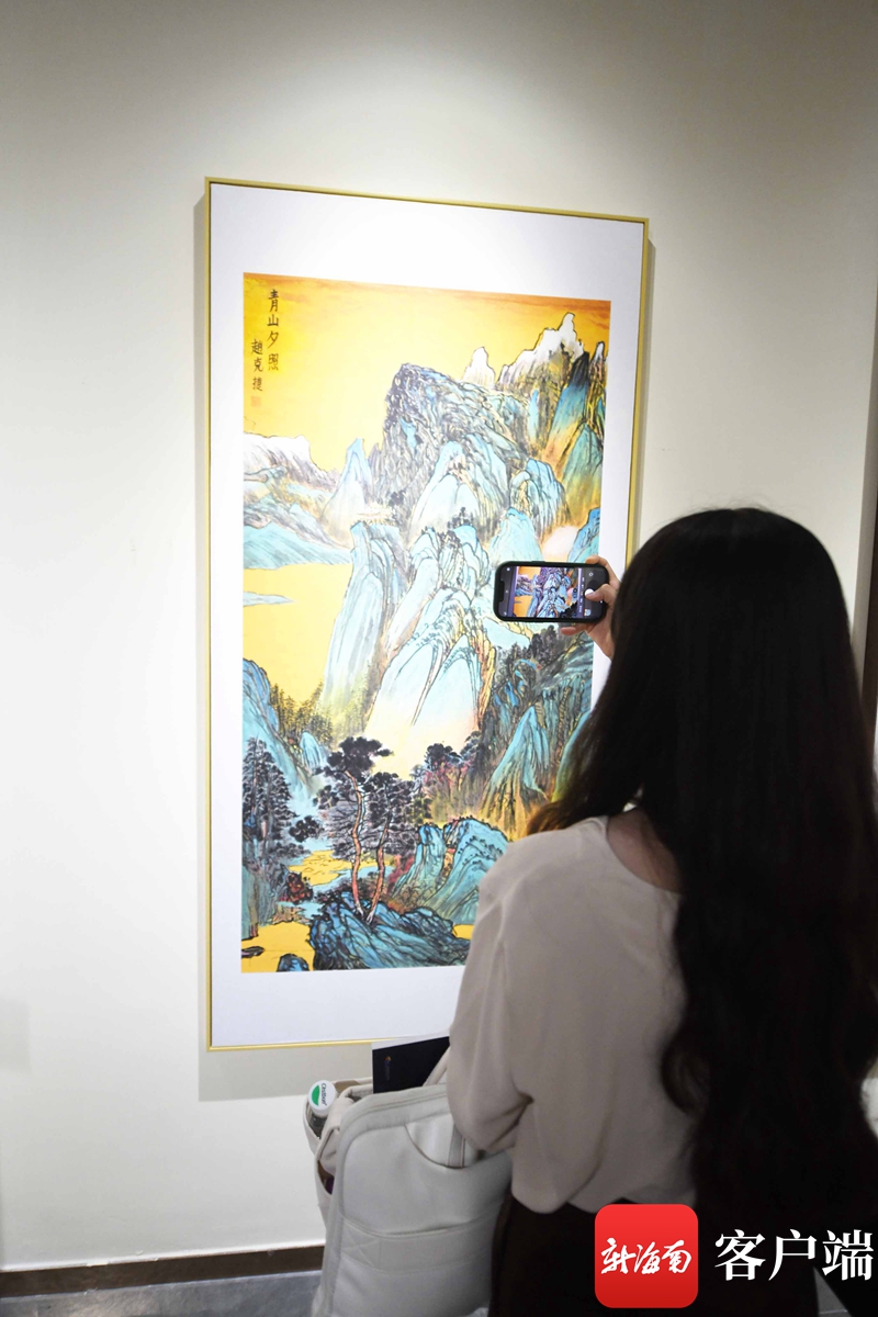 3月25日,市民在“巾幗綻放自貿(mào)港”——2023年婦女節(jié)主題美術(shù)作品展現(xiàn)場拍照打卡。記者 沙曉峰 攝
