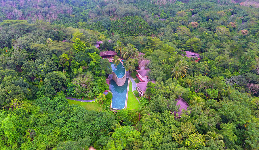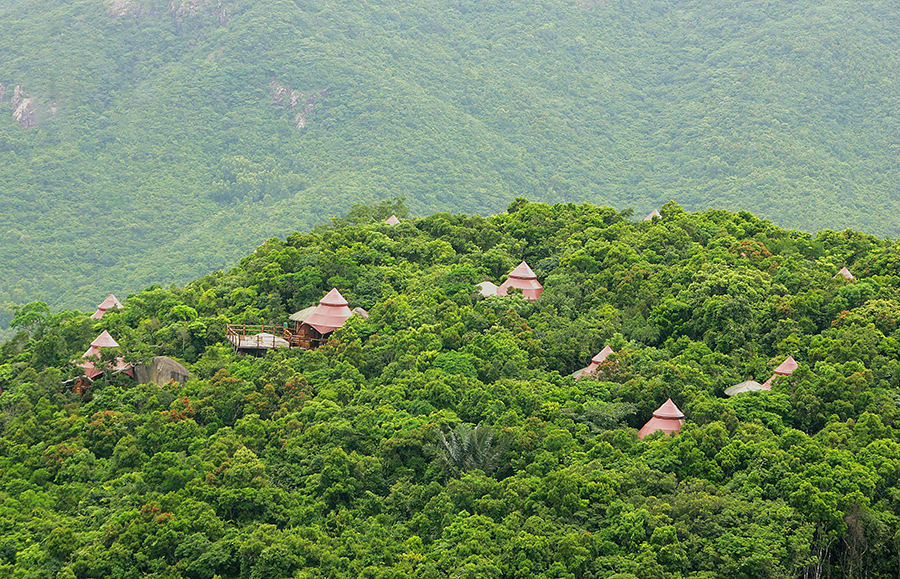 三亞市亞龍灣森林公園,掩映在綠樹叢中的客房,與周圍環境和諧統一。海南日報記者 張杰 攝