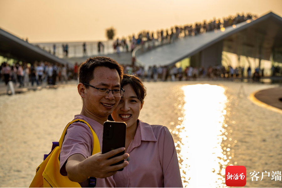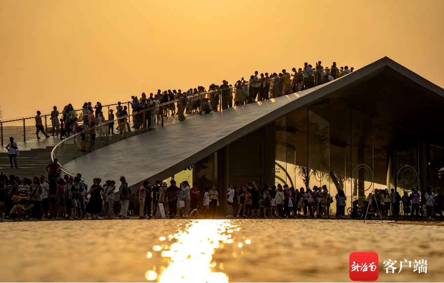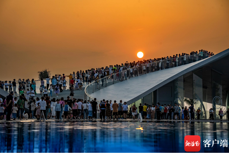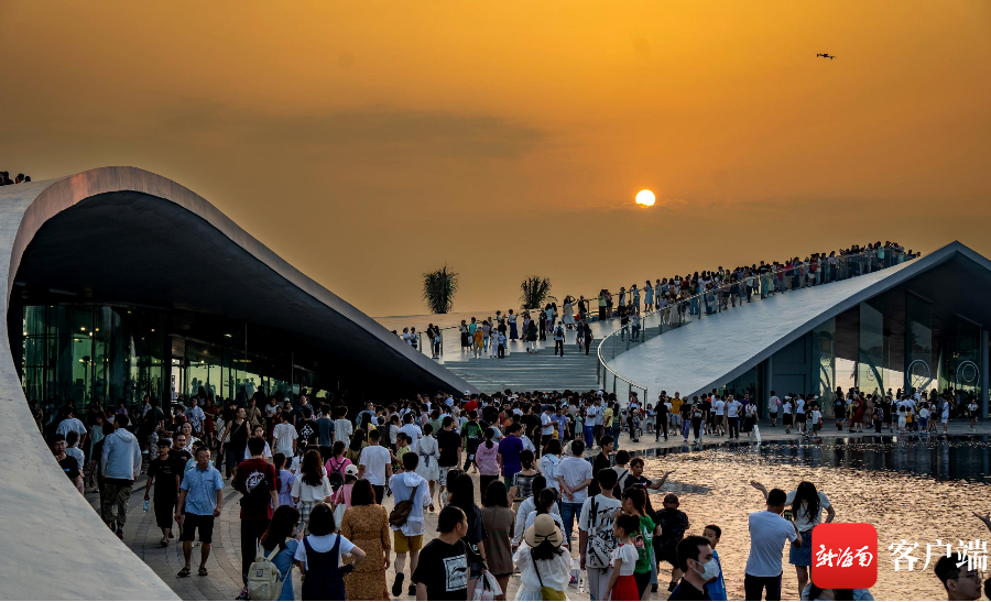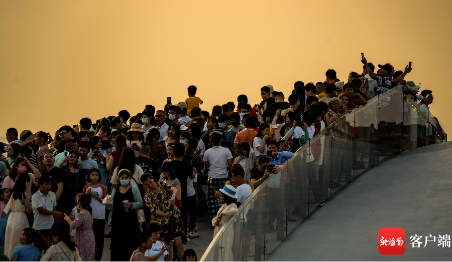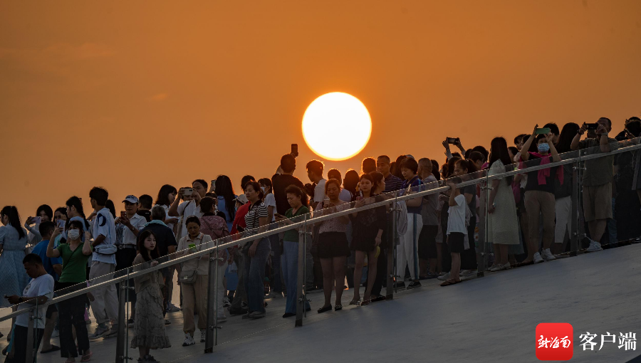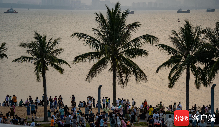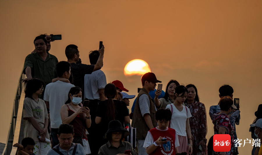 新海南客戶端、南海網、南國都市報5月2日消息(記者 劉孫謀)5月1日下午6點左右,許多市民游客趕往??诤5閸u美麗沙海岸西北處的海口灣6號驛站——“天空之山”,在此等待落日,遠望過去人山人海,市民拿著手機在等待夕陽西下。