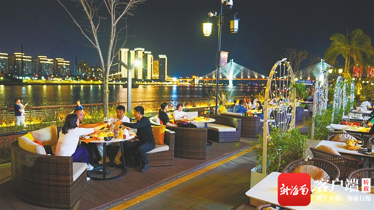當夜幕緩緩落下,??跒硟砂兜臒艄鉂u次亮了起來。灣畔的主題餐廳、酒吧、夜市開始忙碌起來。迎著海風(fēng)喝一杯咖啡,約三五好友聚餐敘舊,在煙霧升騰的攤位前吃幾串燒烤、喝一杯甘蔗汁,不管你來自何方,此時此刻都可以做一回舌尖上的??谌?。