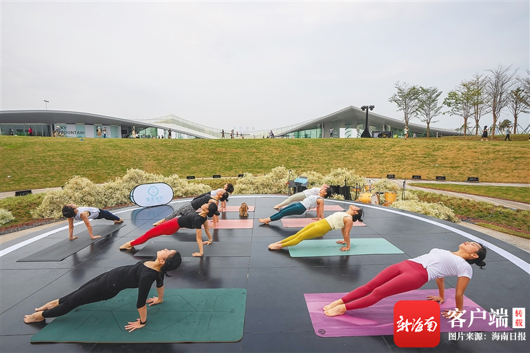 市民在海口灣天空之山驛站一帶練瑜伽。海南日報記者 李天平 攝