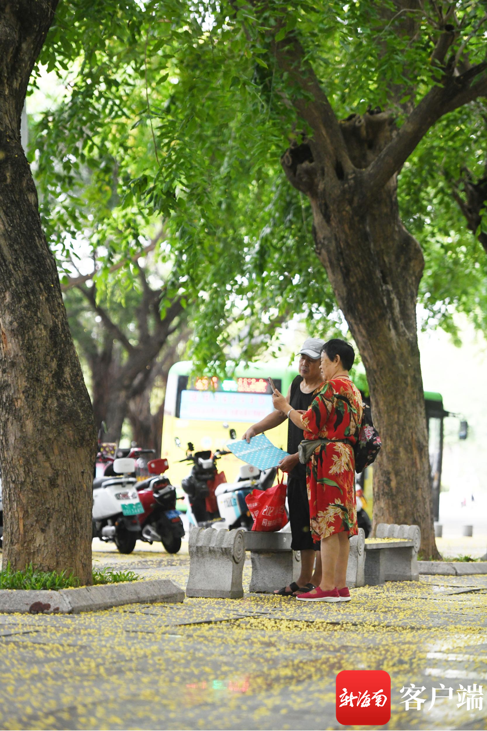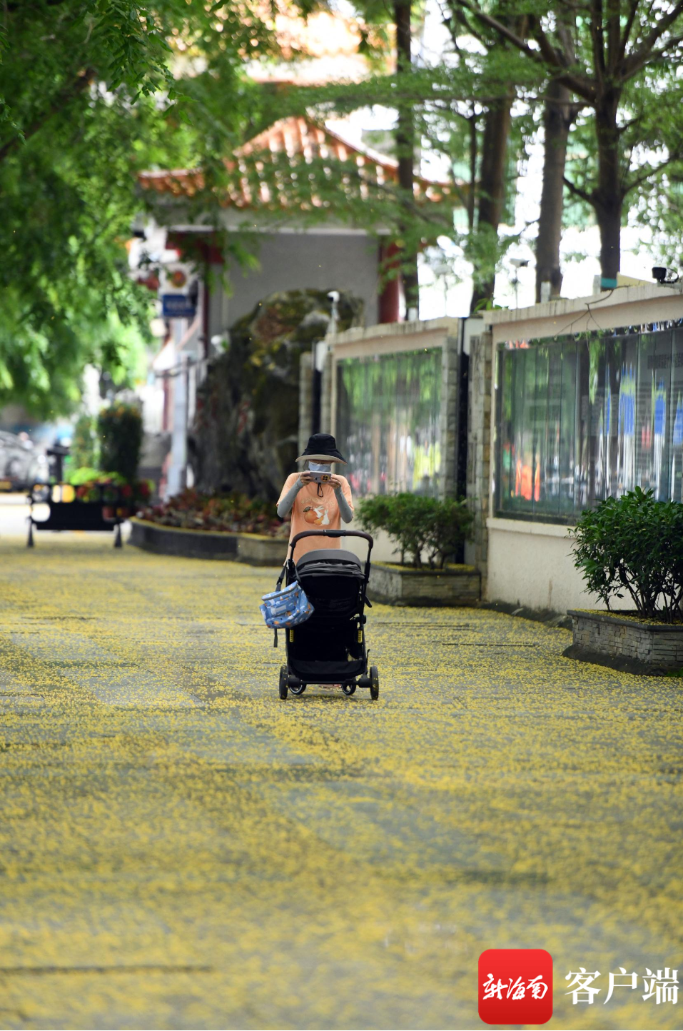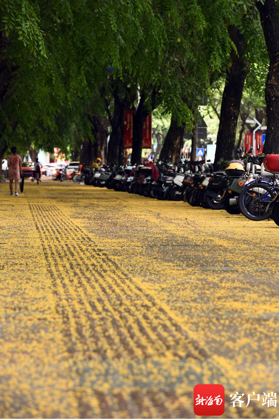 新海南客戶端、南海網、南國都市報5月15日消息(記者 沙曉峰)五月的三亞街頭,正值紫檀花開,微風輕拂,金黃色的小花落滿地,遠遠望去好像給大地鋪上一層黃燦燦的地毯。