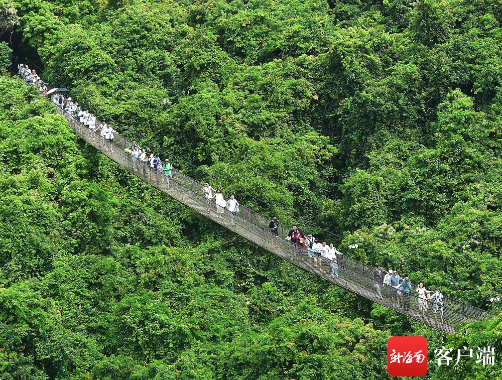 6月22日,游人在三亞亞龍灣熱帶天堂森林旅游區登高望遠,感受夏日熱帶雨林涼爽宜人的旅游環境。通訊員 黃慶優 攝