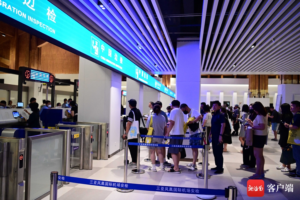 7月6日,旅客在三亞鳳凰國際機場辦理入境手續。記者沙曉峰攝